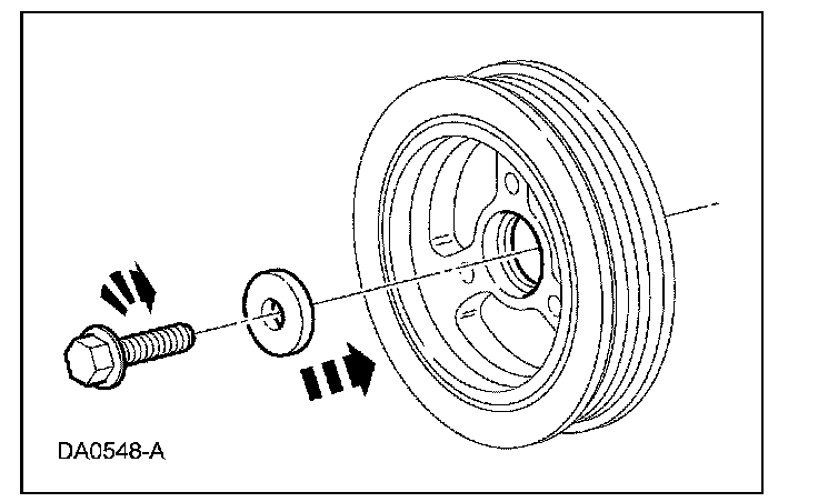 62. Tighten the new crankshaft pulley bolt in 4 stages.