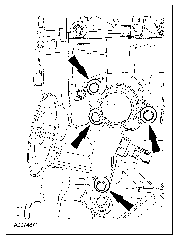 56. CAUTION: Do not rotate the coolant pump housing once the coolant pump has been positioned in the cylinder block. Damage to the O-ring seal will occur.