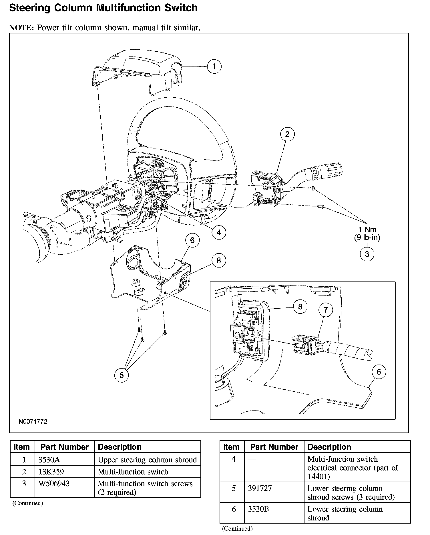 Steering Column Multifunction Switch (Part 2):