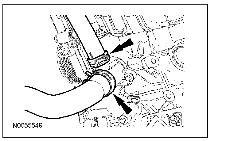 10. Disconnect the 2 coolant hoses from the oil filter adapter.
