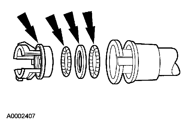 2. Install a new coupling retainer, spacer, and lubricated O-ring seals into the quick disconnect coupling housing.