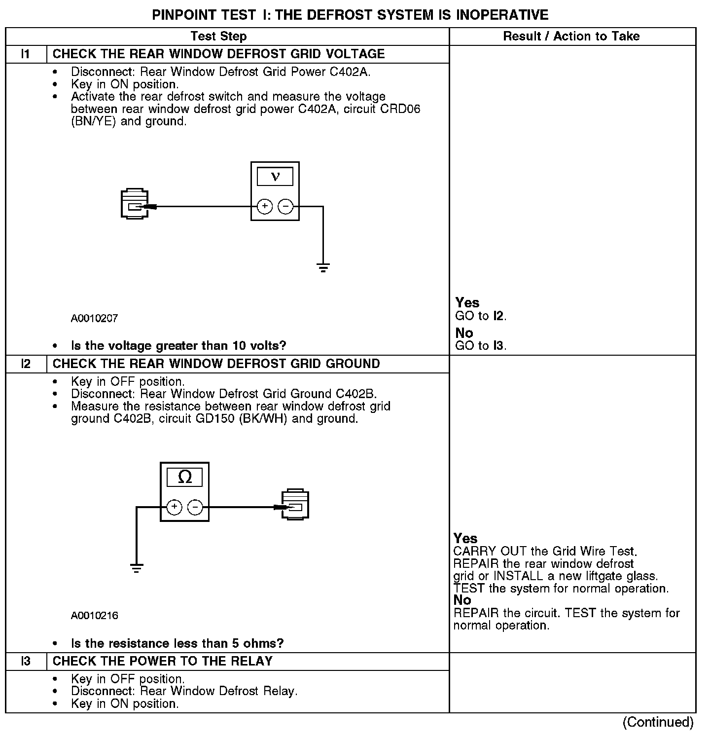 - Open or short in rear window defrost grid