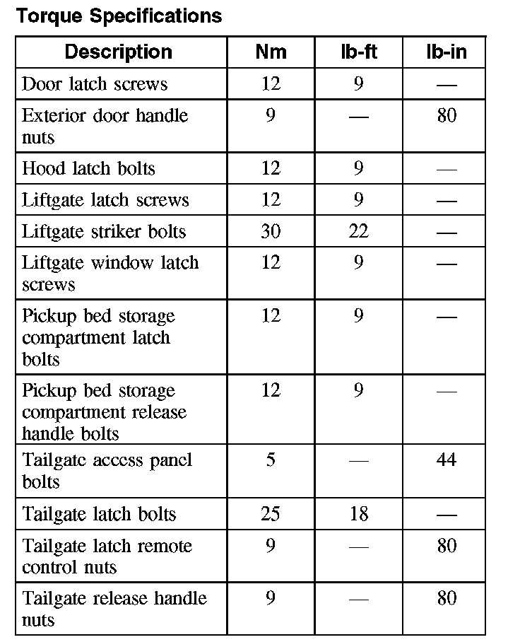 Torque Specifications: