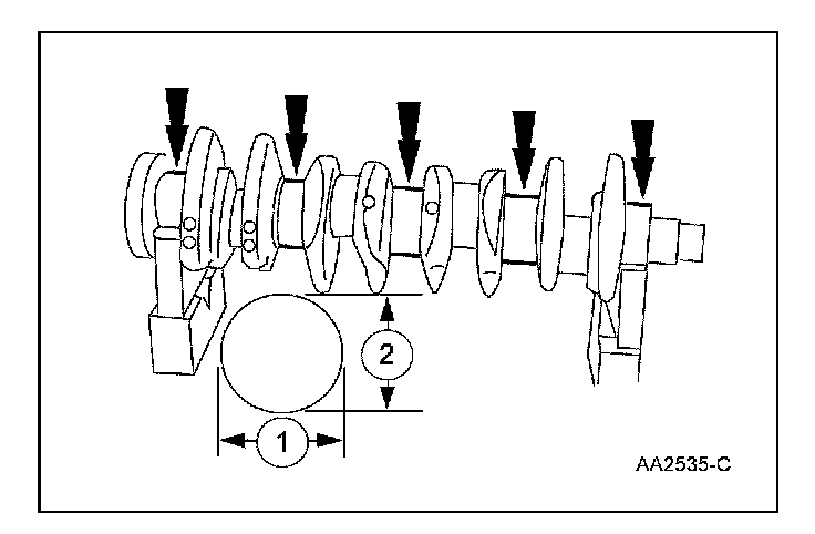 Crankshaft Main Bearing Journal Diameter1. Measure each of the crankshaft main bearing journal diameters in at least 2 directions.