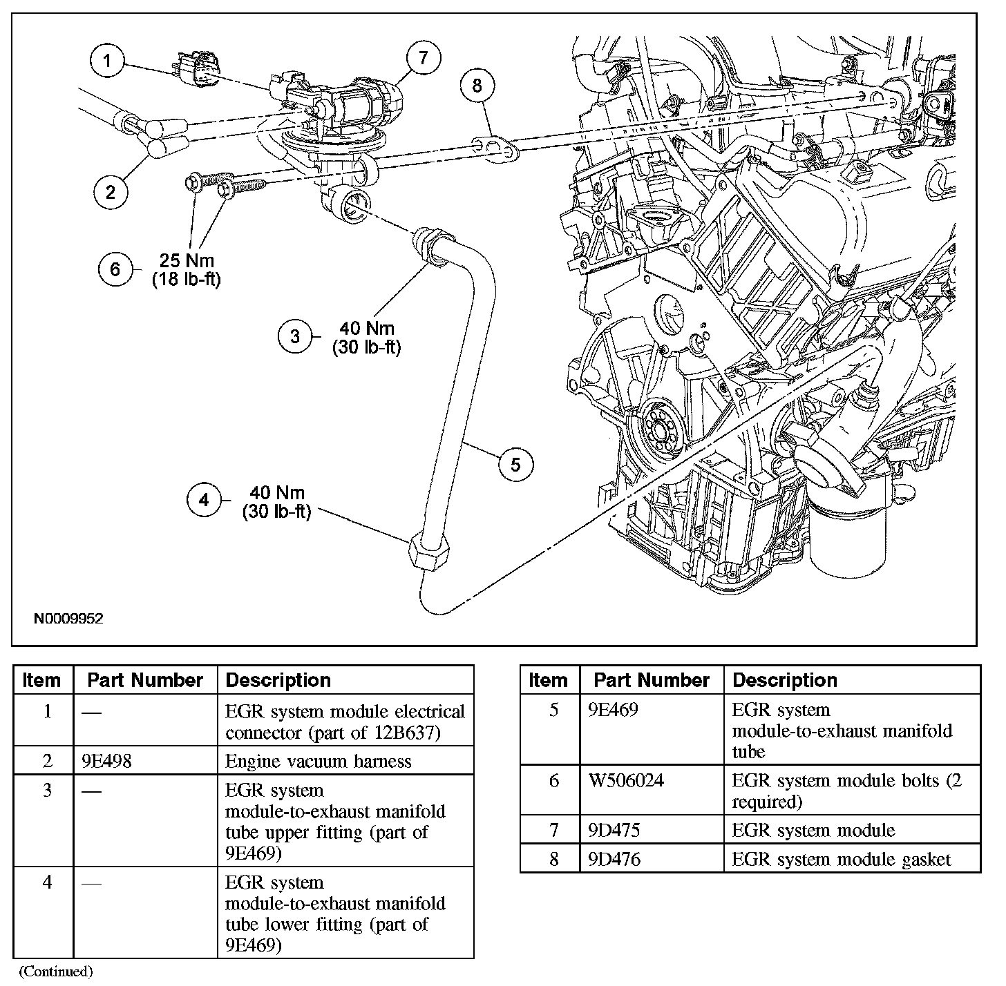 - Install a new EGR system module gasket.