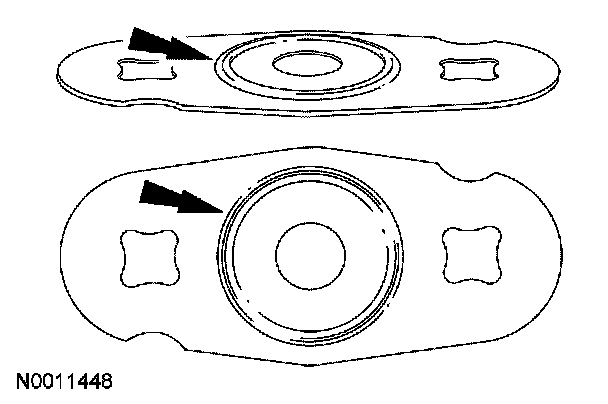 3. NOTE: When installing the new EGR module gasket, install with the side with the raised circle facing the intake manifold.