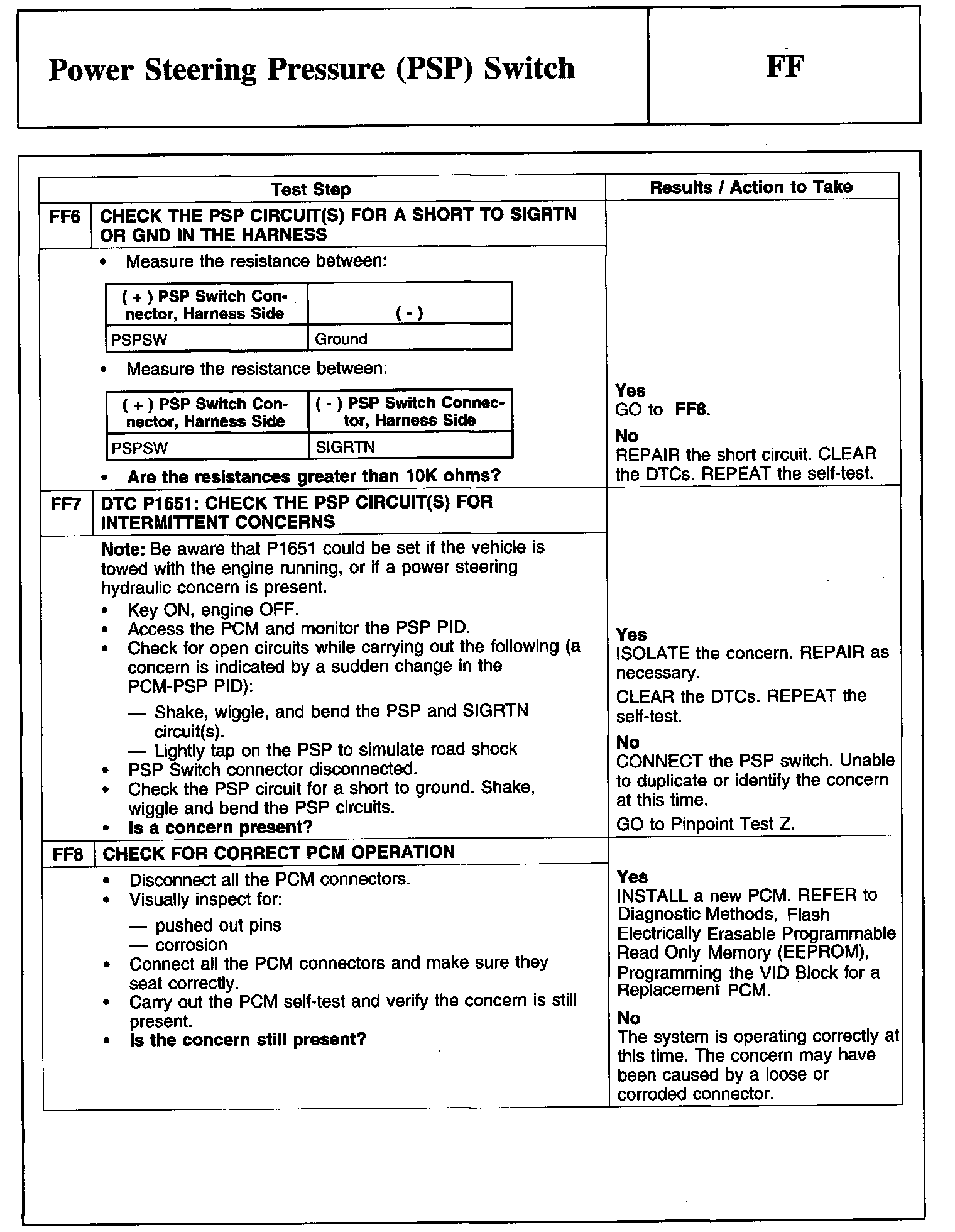 Tests FF: Power Steering Pressure (PSP) Switch