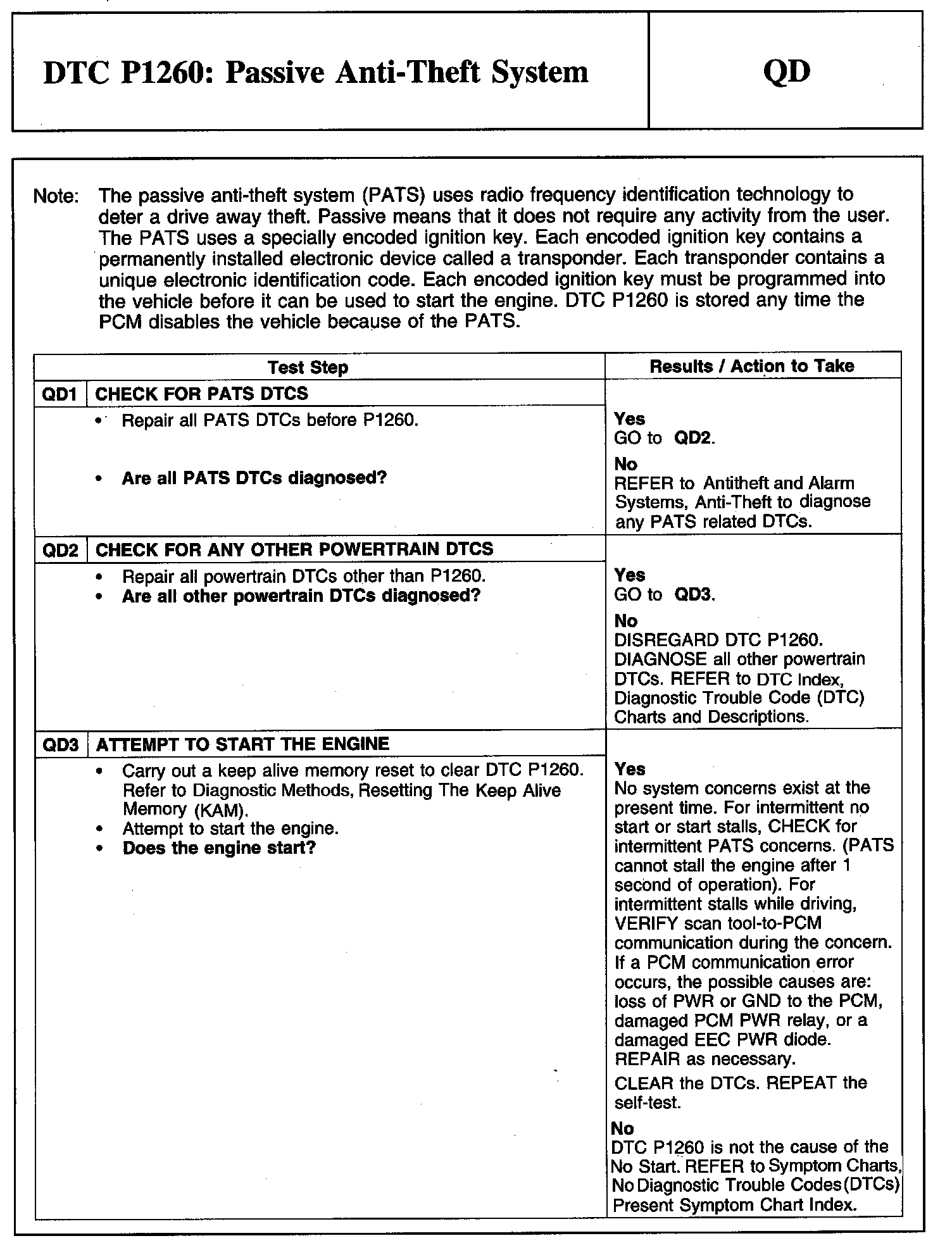 Tests QD: DTC P1260: Passive Anti-Theft System