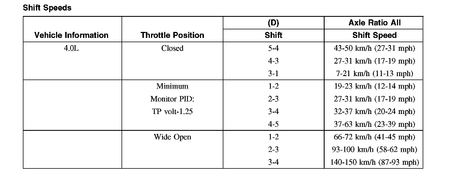 Shift Speeds