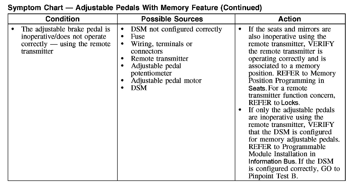 Symptom Chart - Adjustable Pedals With Memory Feature (Part 1):