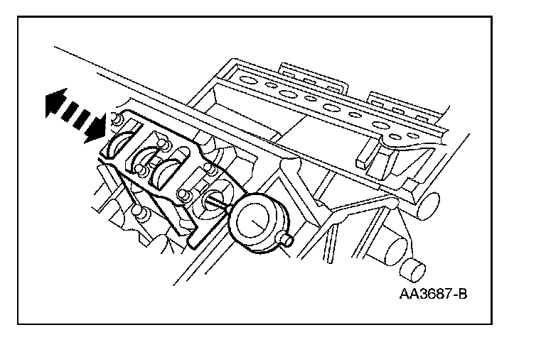 4. Move the camshaft to the front of the cylinder head. Note and record the camshaft end play.