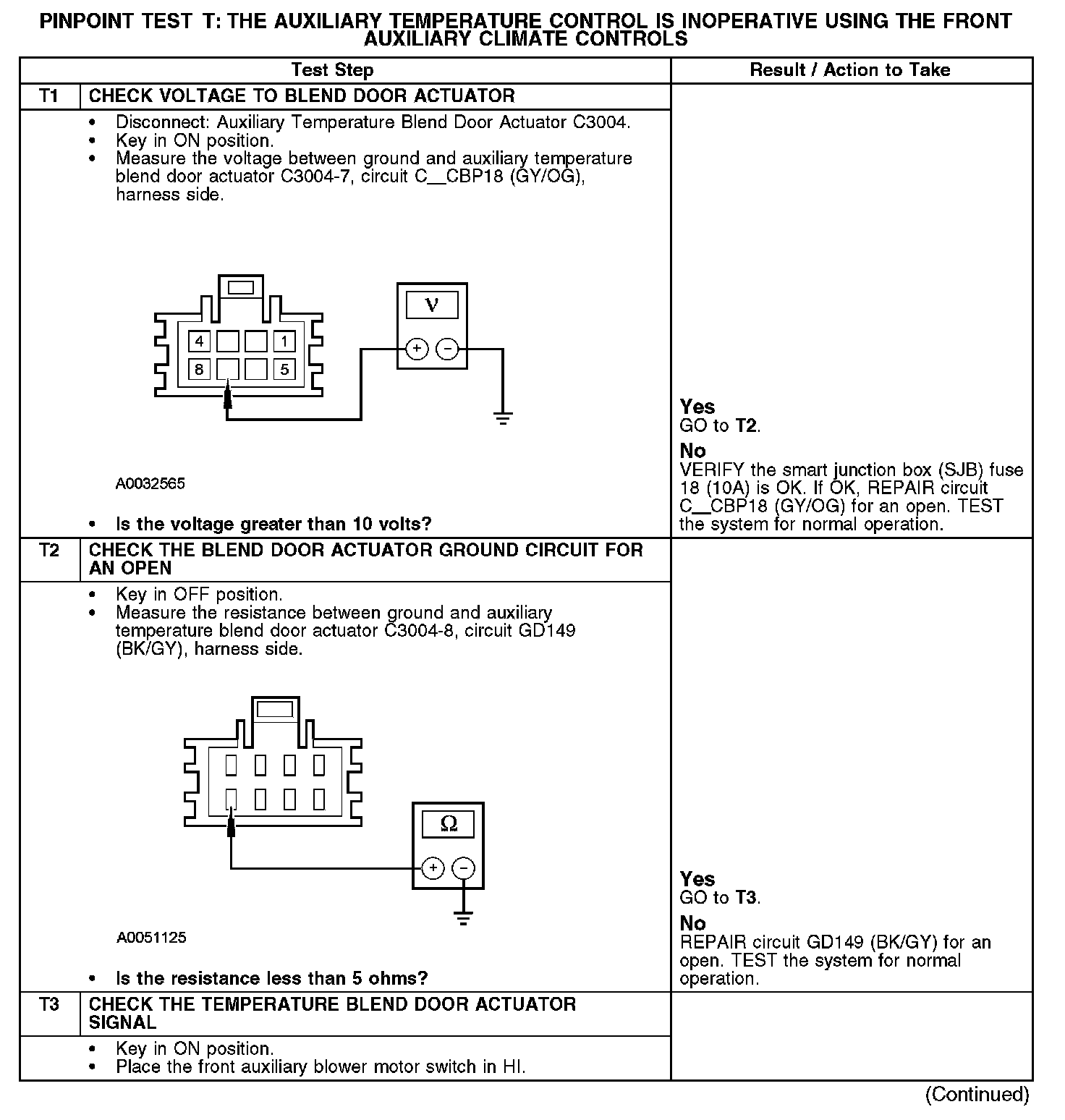 PINPOINT TEST T: THE AUXILIARY TEMPERATURE CONTROL IS INOPERATIVE USING THE FRONT AUXILIARY CLIMATE CONTROLSNormal Operation