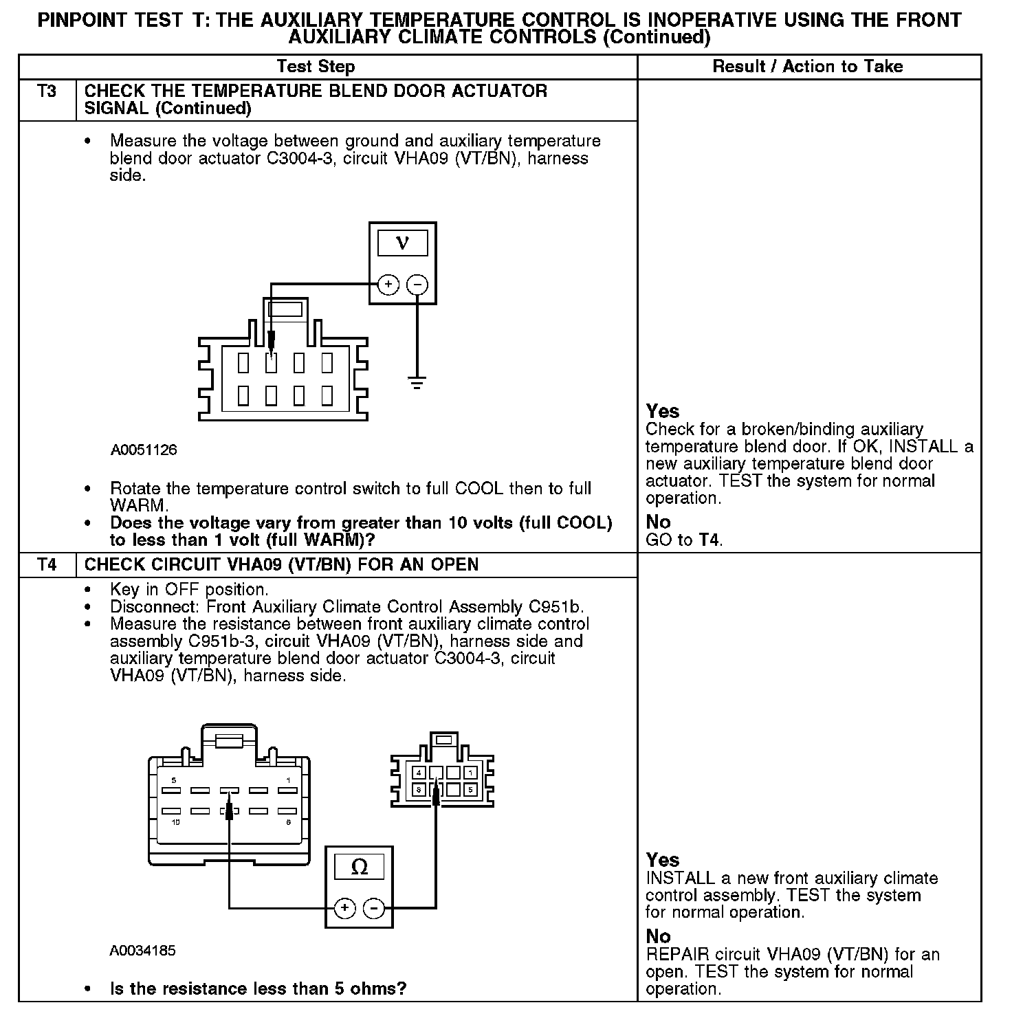 Test T: The Auxiliary Temperature Control Is Inoperative Using The Front Auxiliary Climate Controls