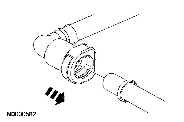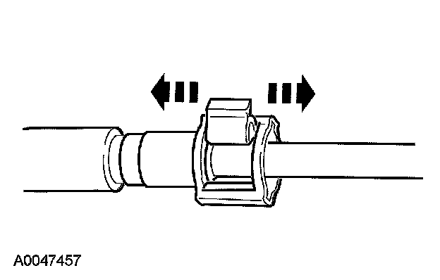 - When reusing liquid or vapor tube connectors, make sure to use compressed air to remove any foreign material from the connector retaining clip area before separating from the tube or damage to the tube or connector retaining clip may occur. Apply clean engine oil to the end of the tube before inserting the tube into the connector.