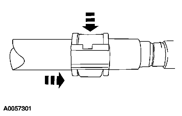 Fully insert the male tube end in the quick connect coupling and push the clip downward to lock the fuel tubes together.