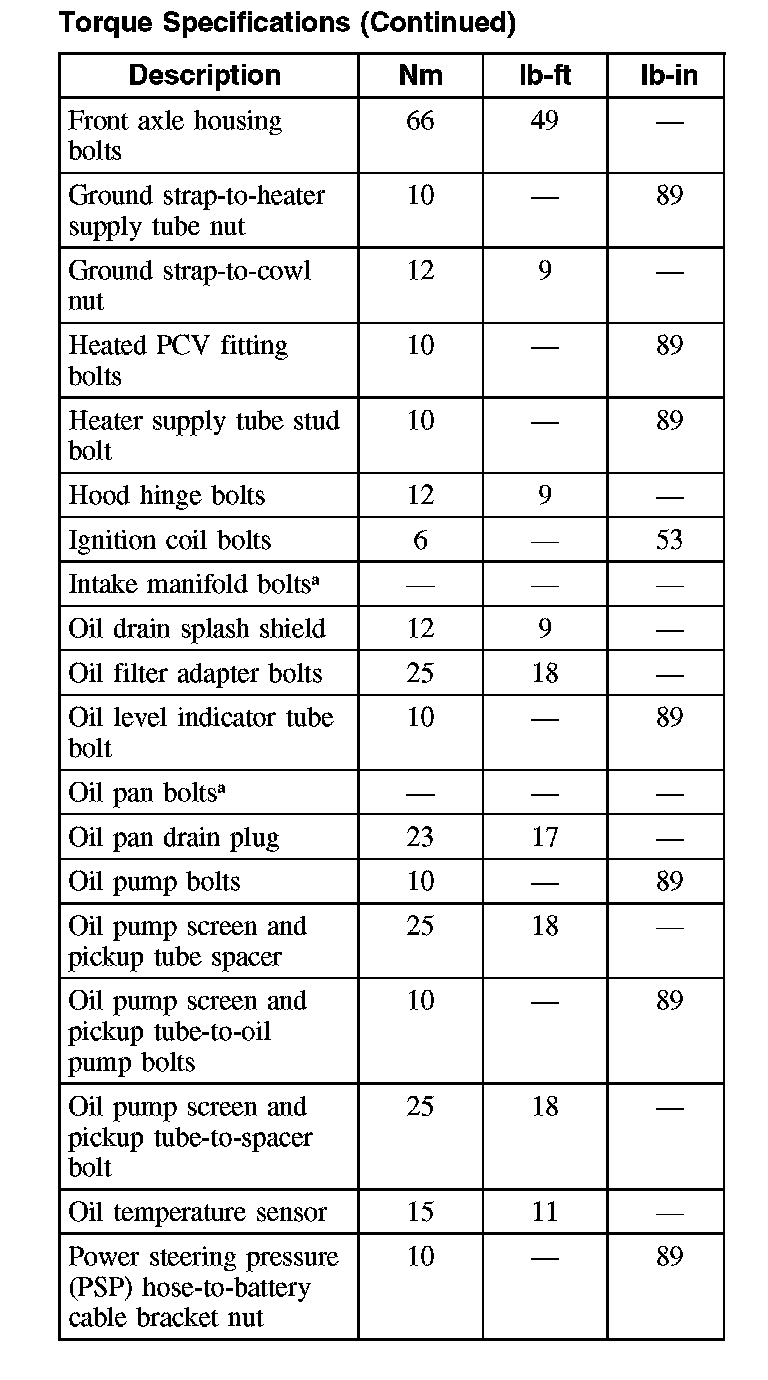 Torque Specifications