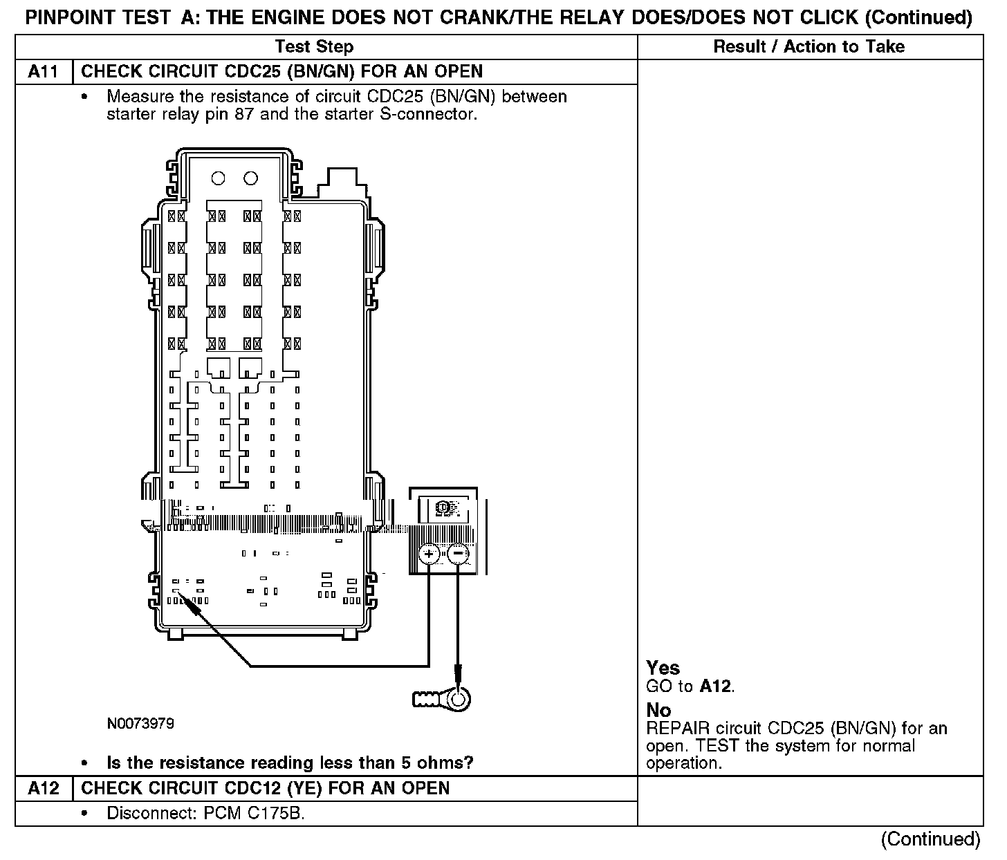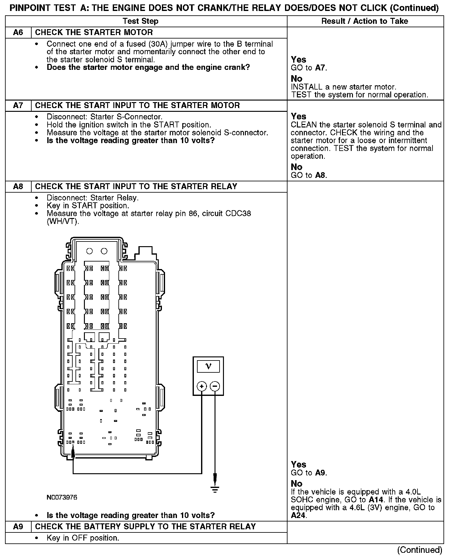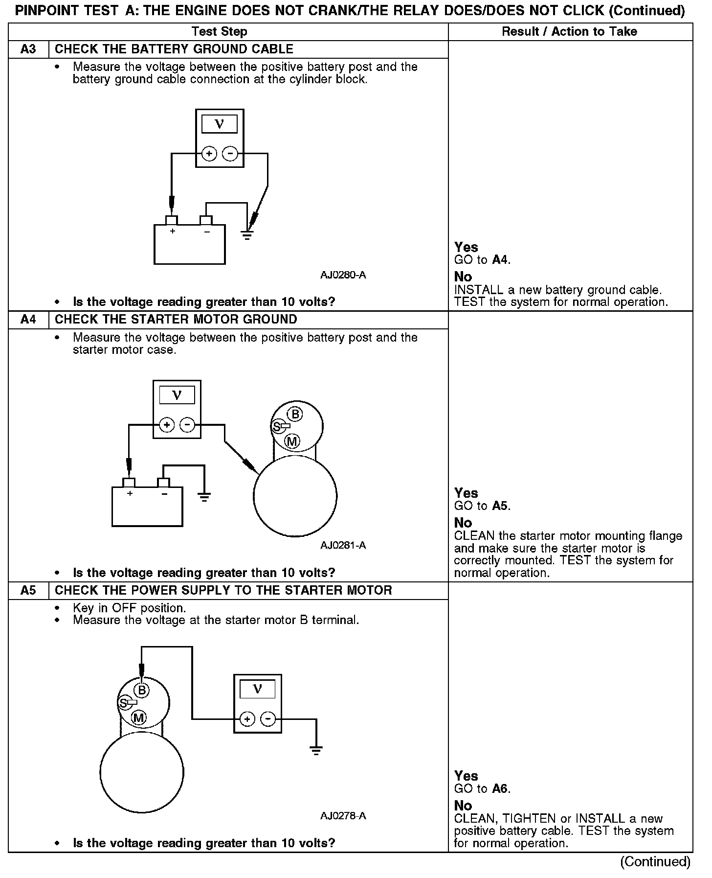 PINPOINT TEST A: THE ENGINE DOES NOT CRANK/THE RELAY DOES/DOES NOT CLICKA1-A2: