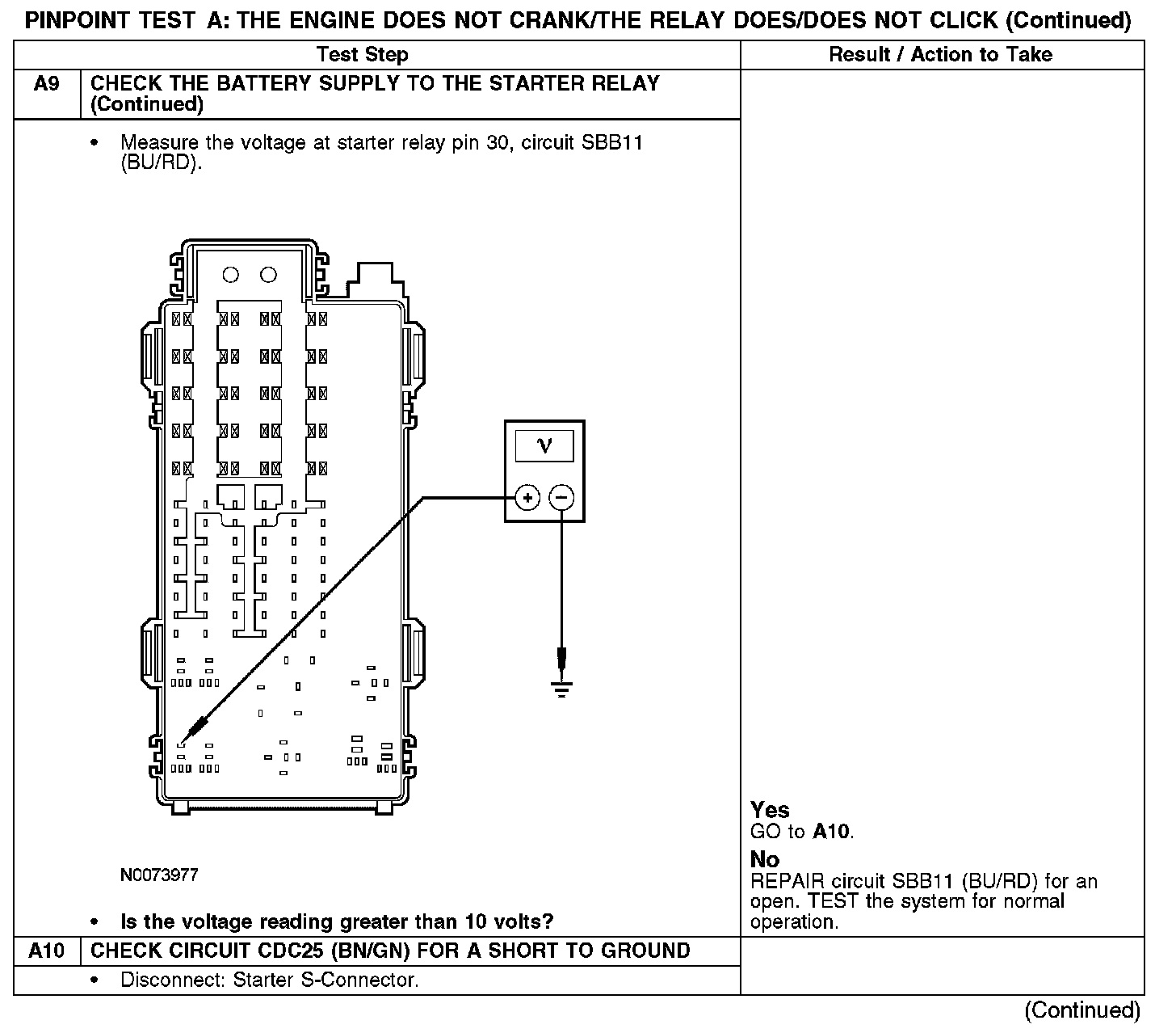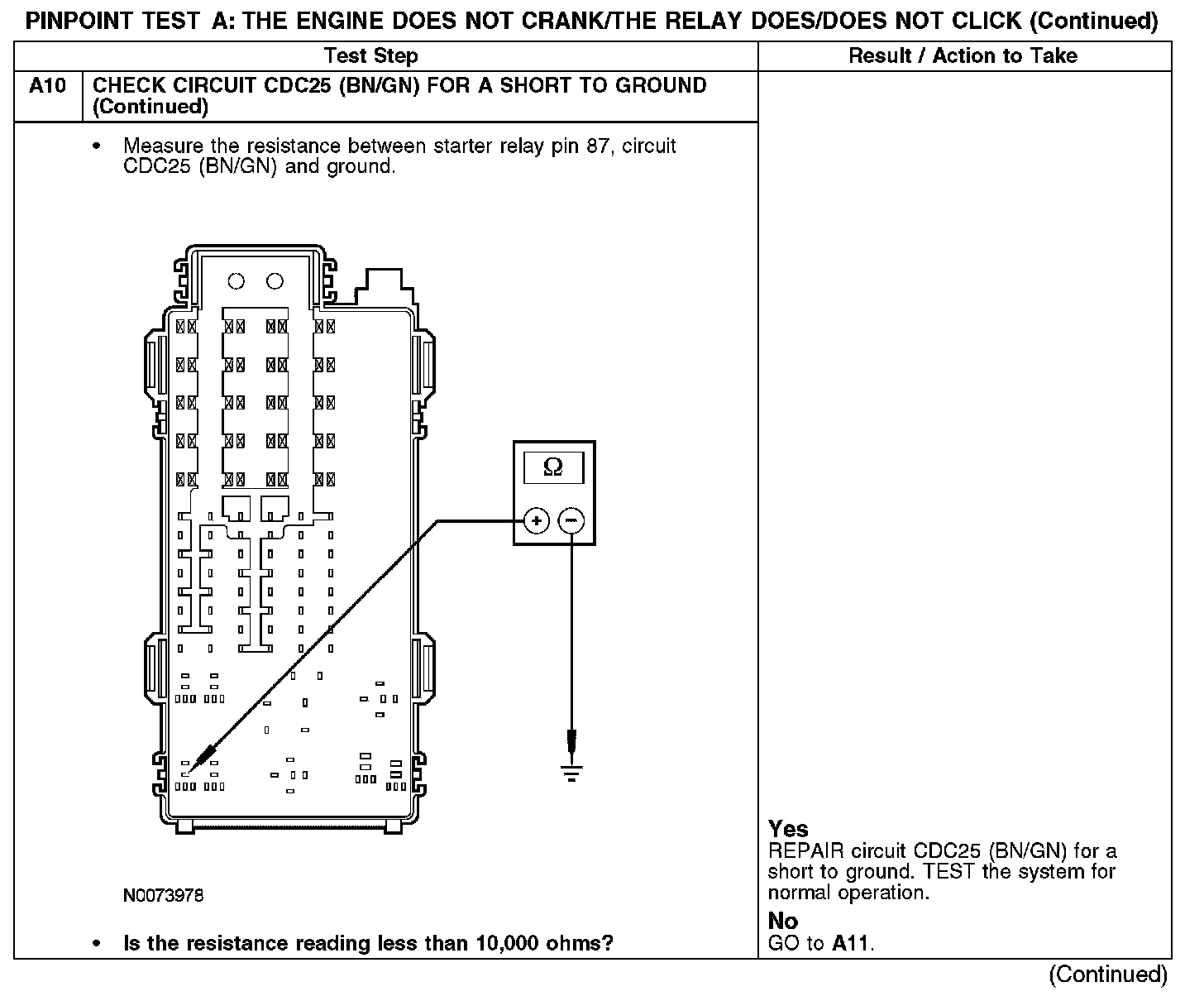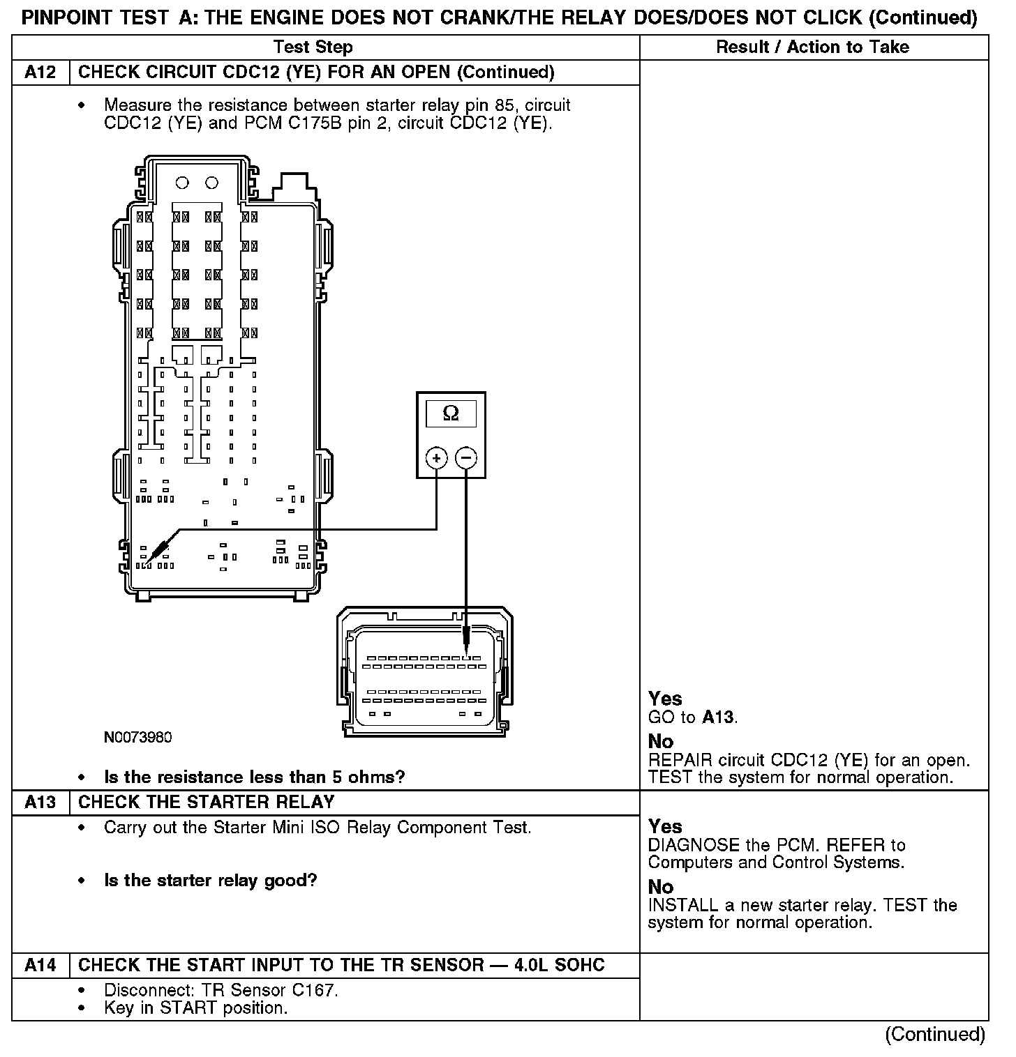 PINPOINT TEST A: THE ENGINE DOES NOT CRANK/THE RELAY DOES/DOES NOT CLICKA1-A2: