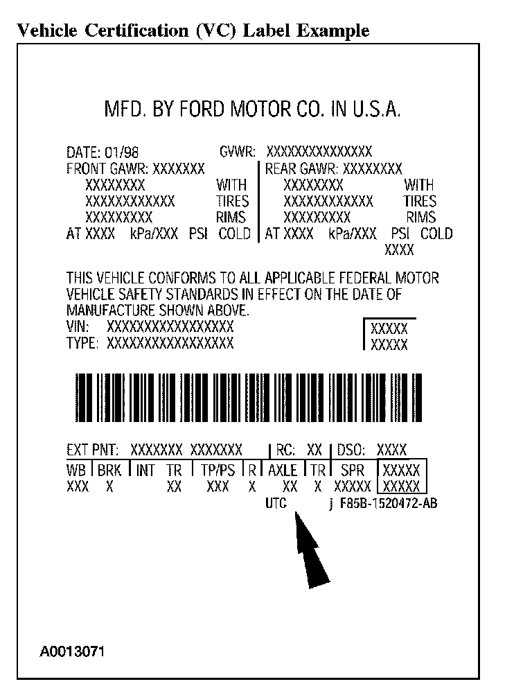 Vehicle Certification (VC) Label Example: