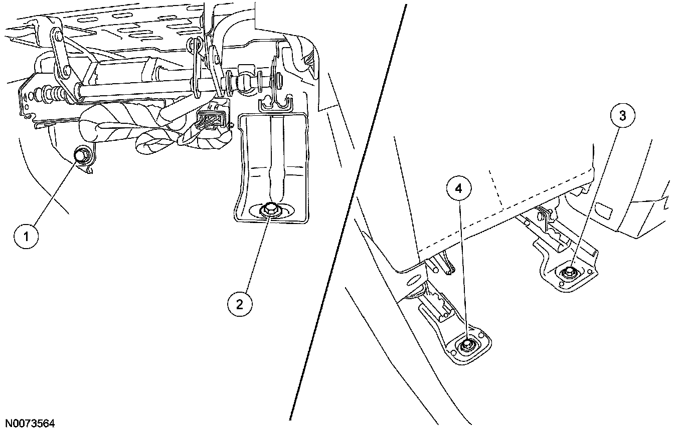 4. NOTE: Driver seat track inboard rear mounting ear shown, passenger seat similar.