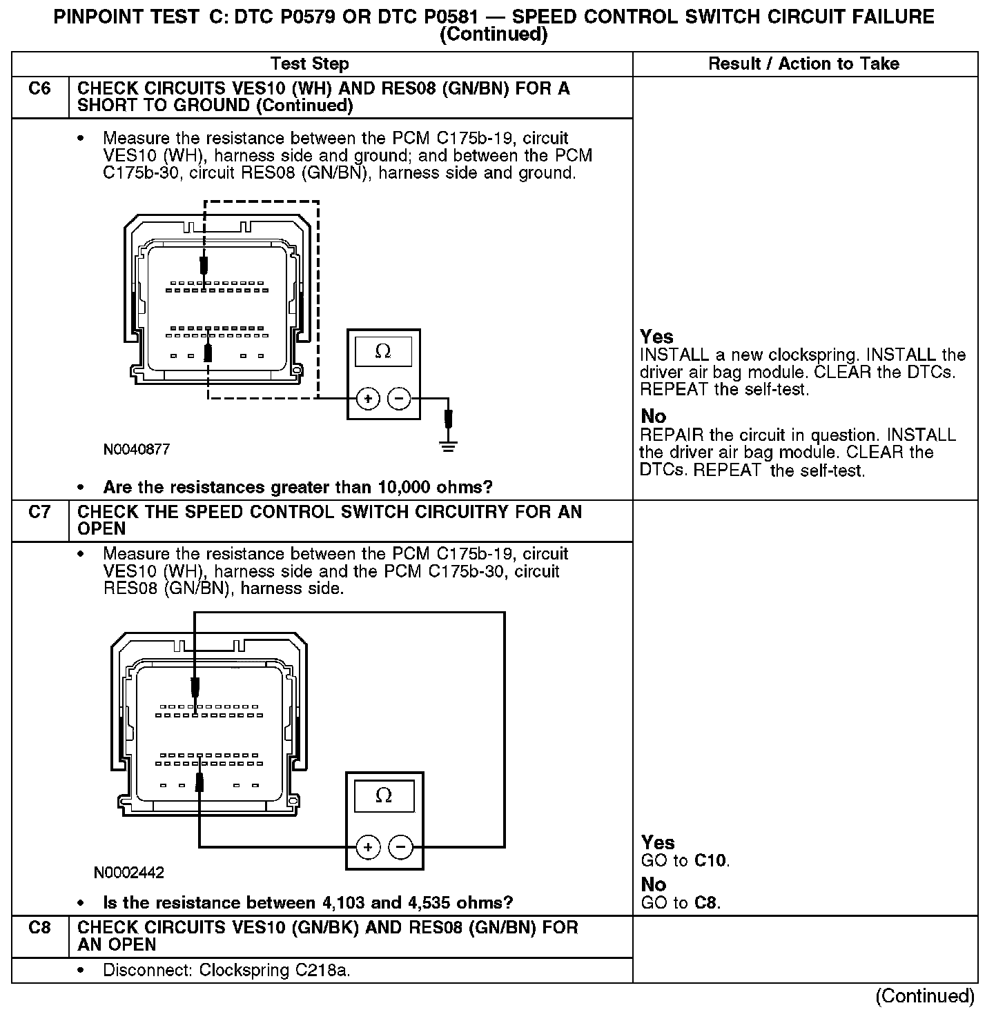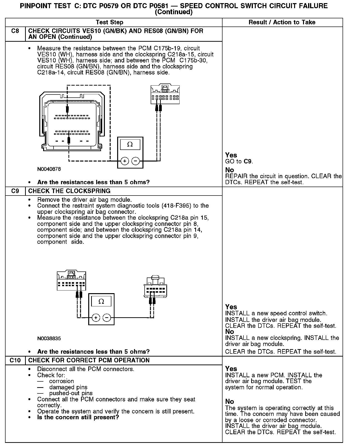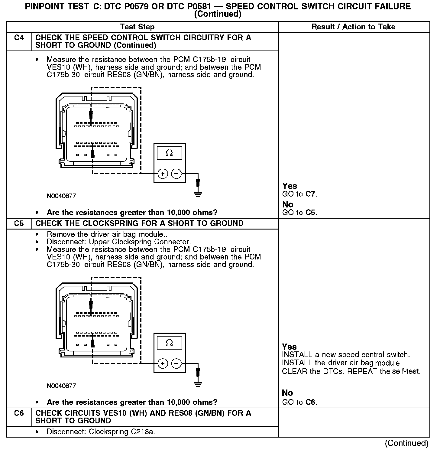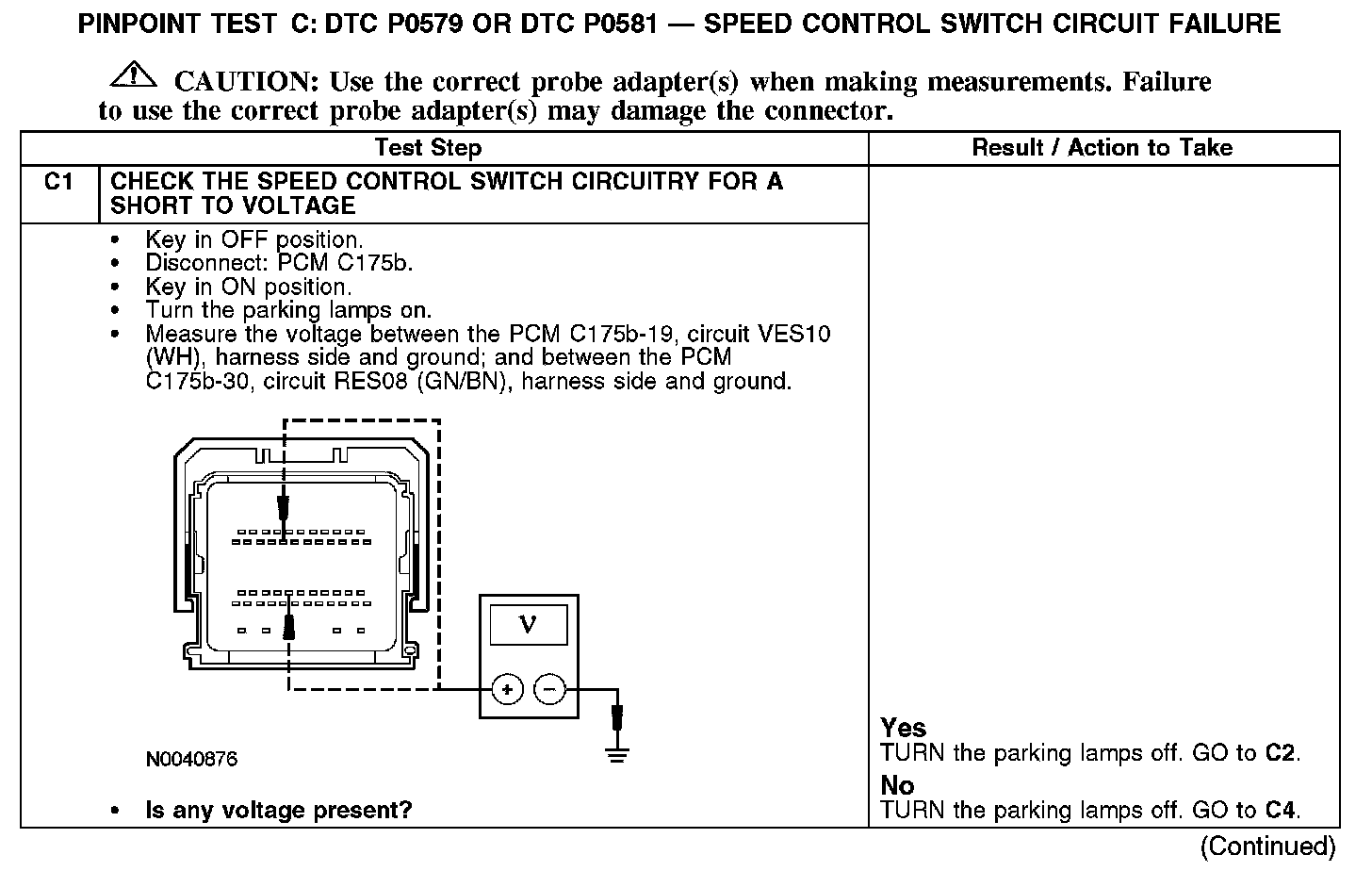 PINPOINT TEST C: DTC P0579 OR DTC P0581 - SPEED CONTROL SWITCH CIRCUIT FAILUREC1: