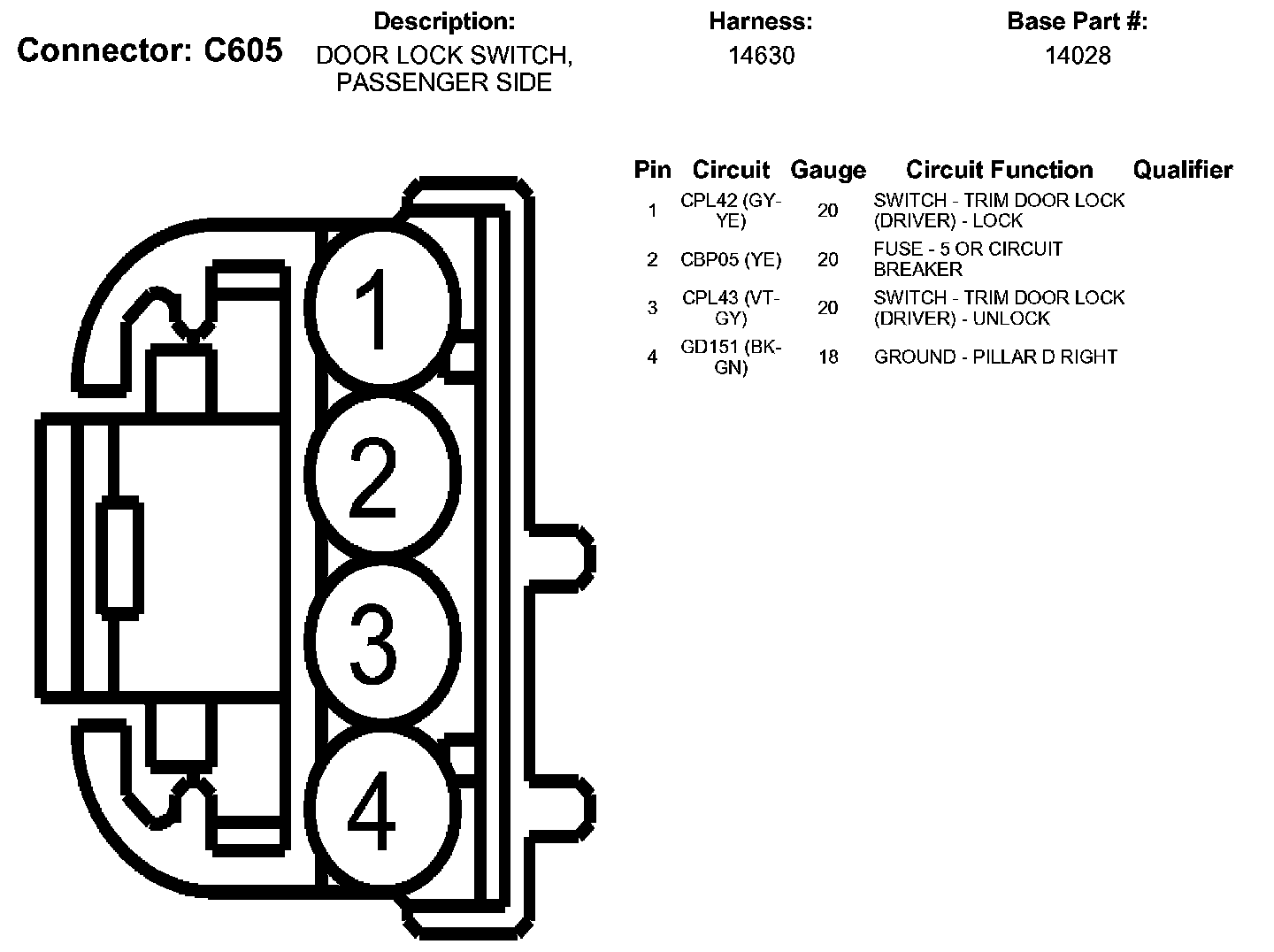 Door Lock Switch, Passenger Side
