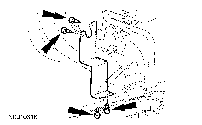 5. Remove the 2 auxiliary line floorpan bracket nuts.