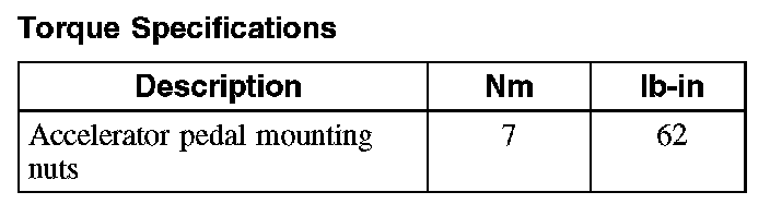 Accelerator Pedal: Specifications
