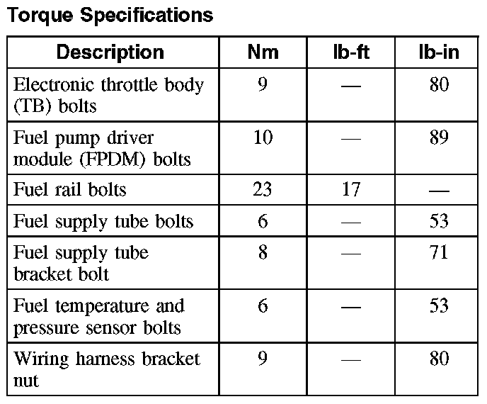 Torque Specifications: