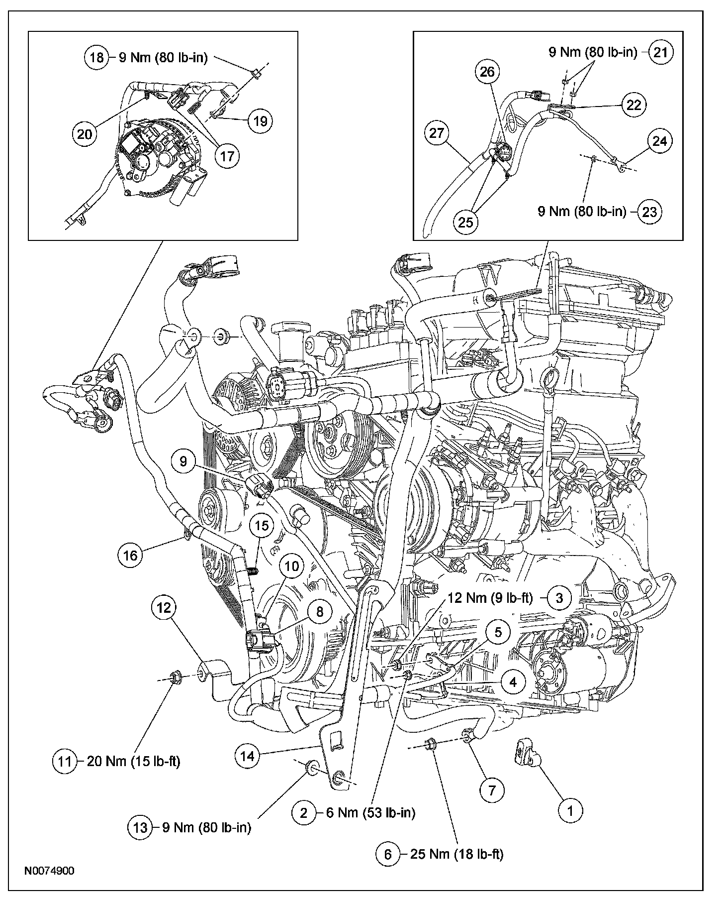 - To install, tighten to 25 Nm (18 lb-ft).