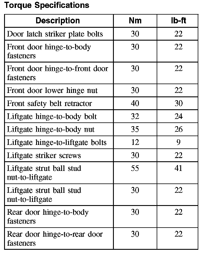 Doors, Hood and Trunk: Specifications