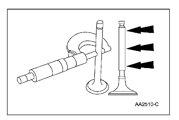Measure the diameter of each intake and exhaust valve stem at the points shown. Verify the diameter is within specification.