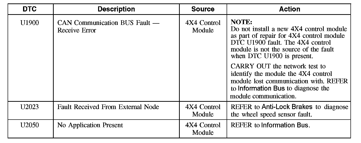 4X4 Control Module DTC Chart