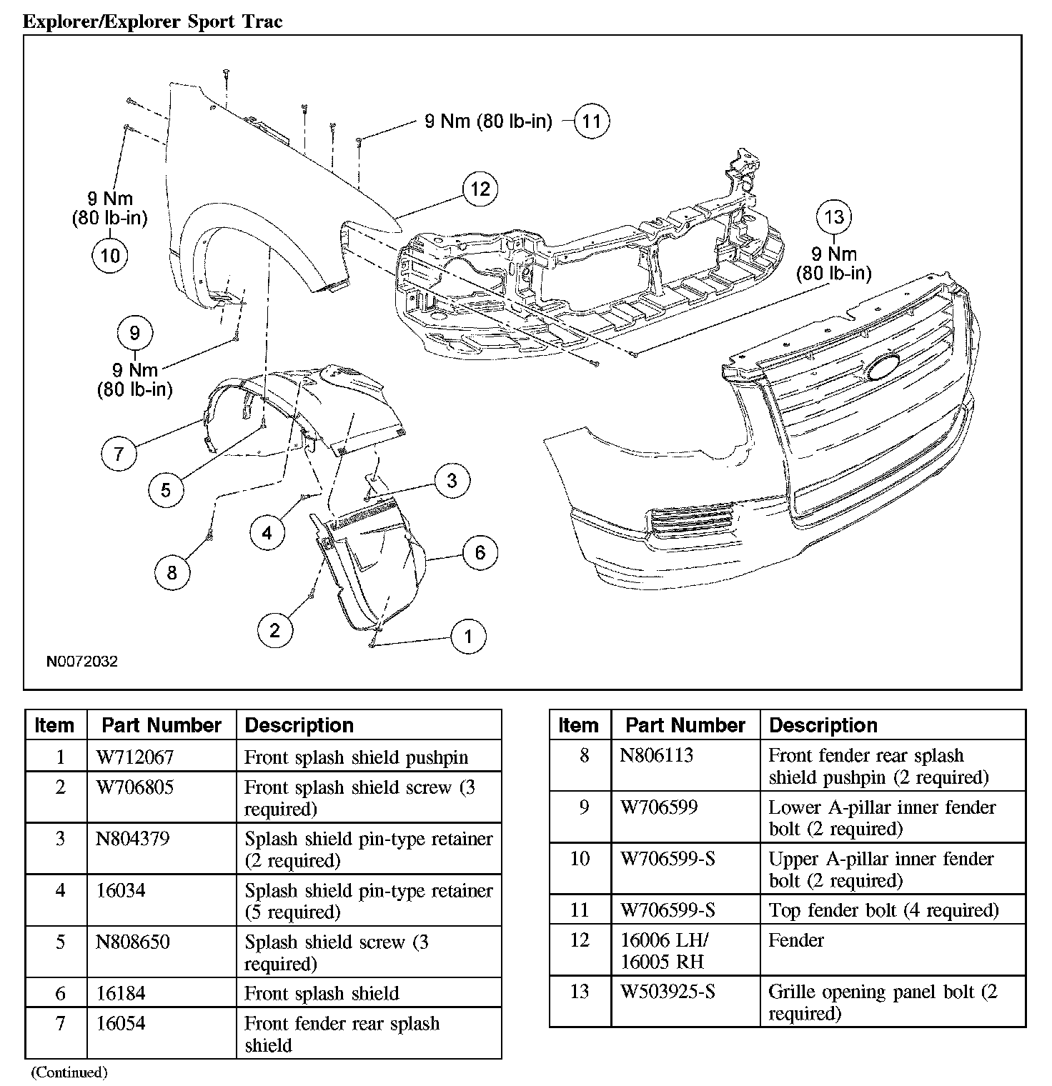 - For Explorer/Explorer Sport Trac, tighten to 9 Nm (80 lb-in).