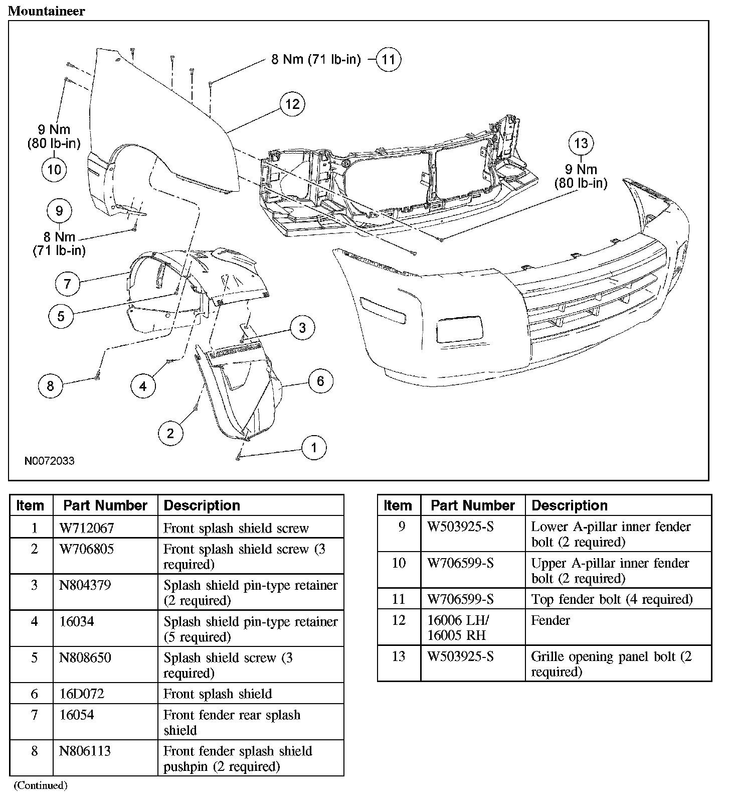 - For Mountaineer, tighten to 8 Nm (71 lb-in).