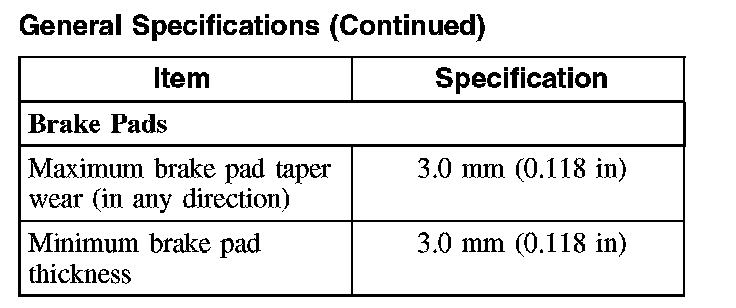 General Specifications, Rear