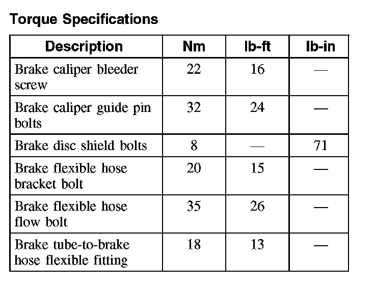 Torque Specifications, Rear