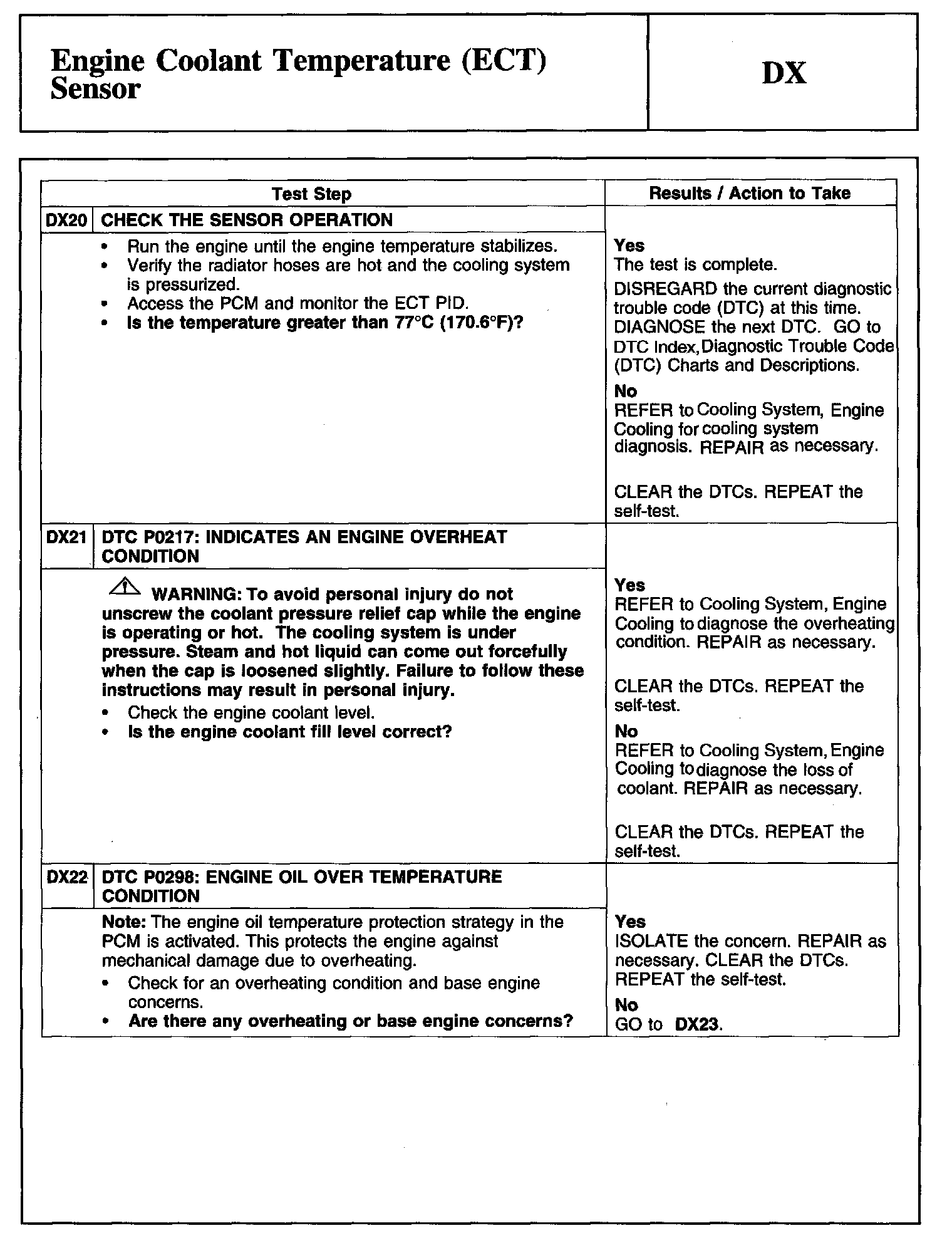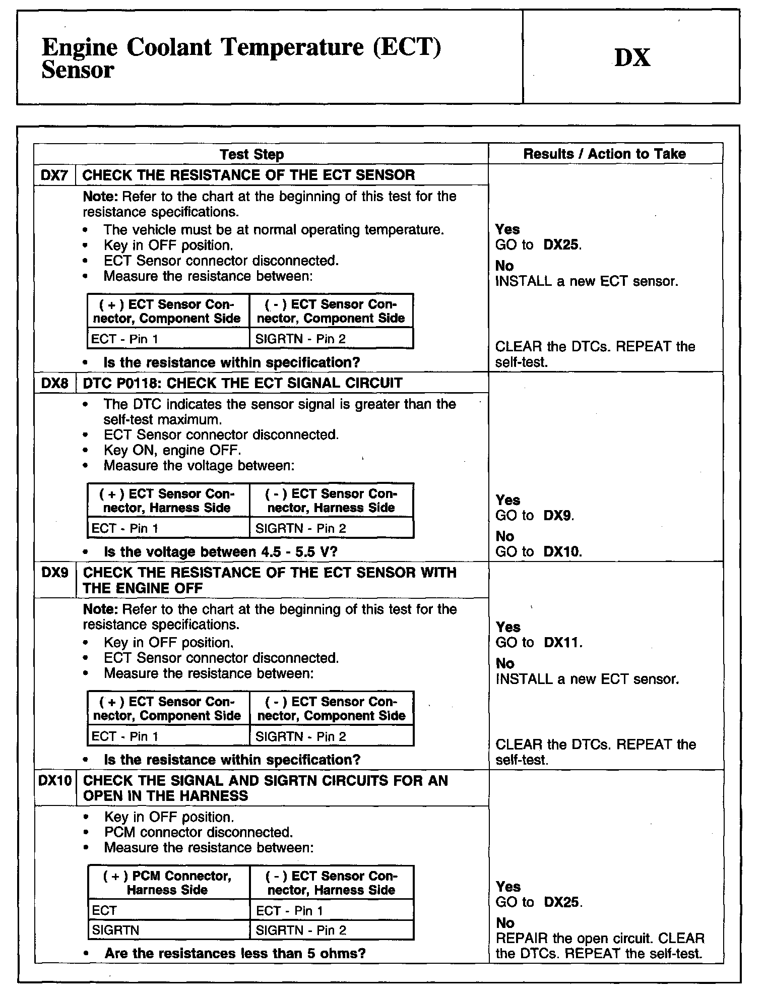Tests DX: Engine Coolant Temperature (ECT) Sensor