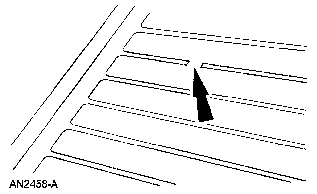 NOTE: The grid line material is not embedded into the glass but is baked to the glass surface and consequently can be scraped off. An undamaged grid line will have small ridges that project above the surface of the glass and can easily be felt when running a fingernail across them. Grid lines that have been "razor bladed" will feel smooth when a fingernail is dragged across the affected area. Inoperative lines may appear to the eye to be undamaged due to residue remaining on the glass and will require diagnosis with a voltmeter or 12V test lamp.
