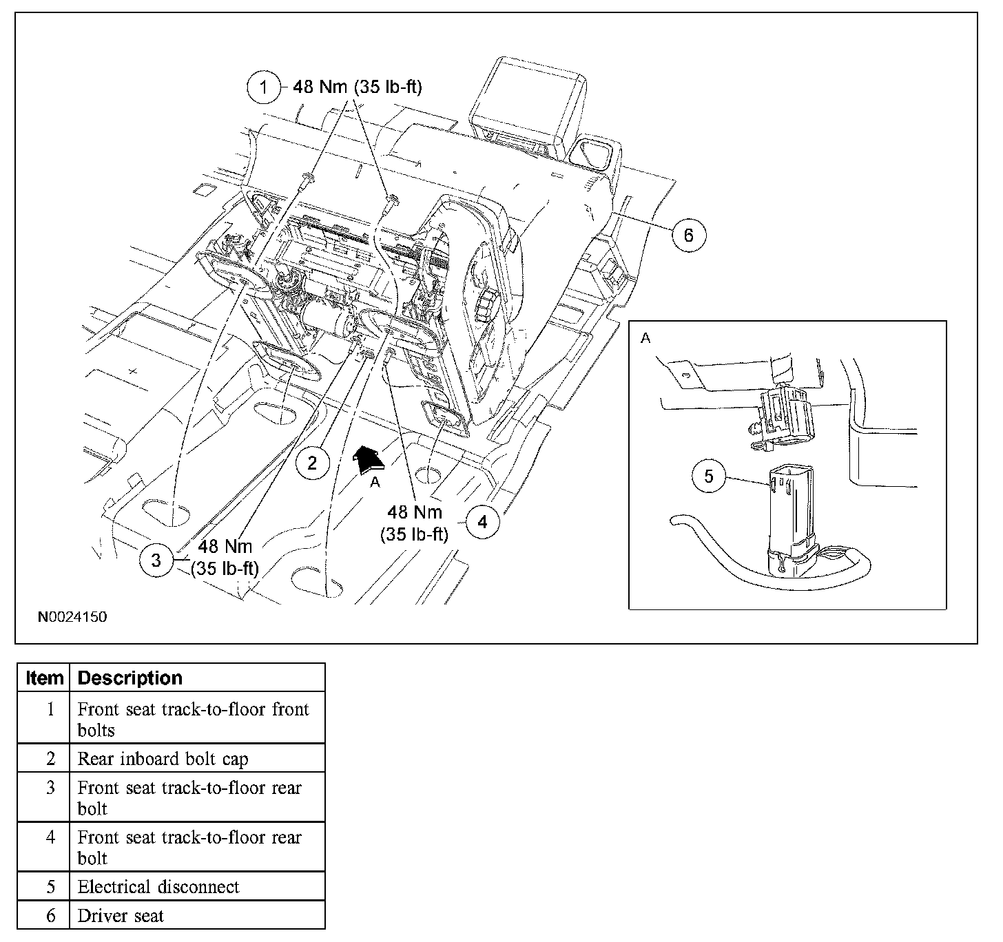 - Tighten the rear seat bolts to 48 Nm (35 lb-ft) in the following sequence: