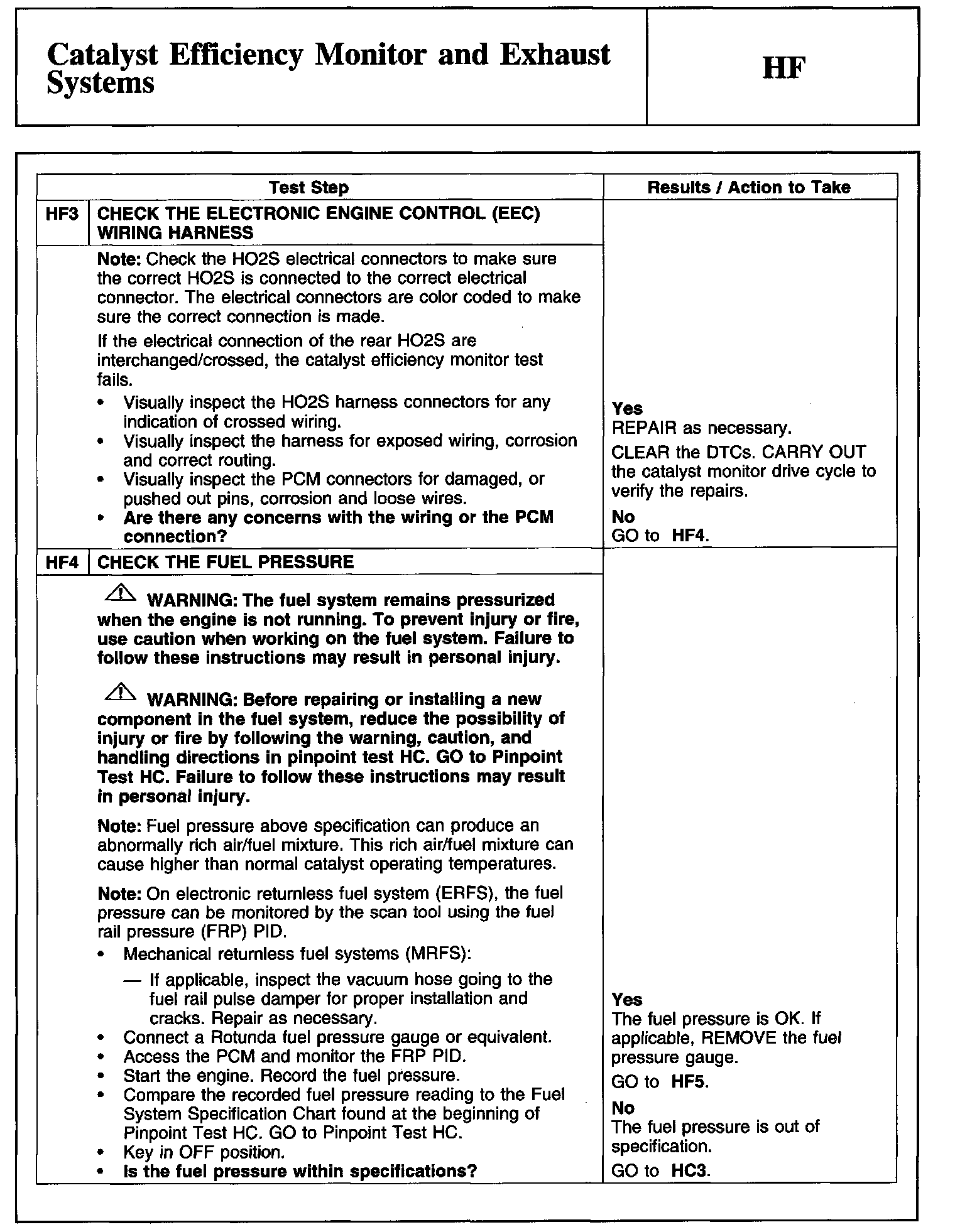 Tests HF: Catalyst Efficiency Monitor and Exhaust Systems