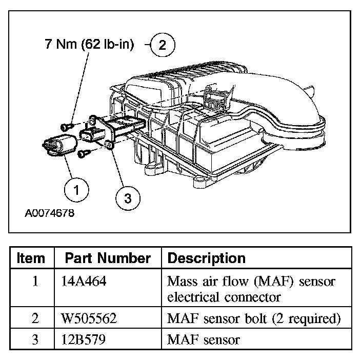 1. Disconnect the mass air flow (MAF) sensor electrical connector.
