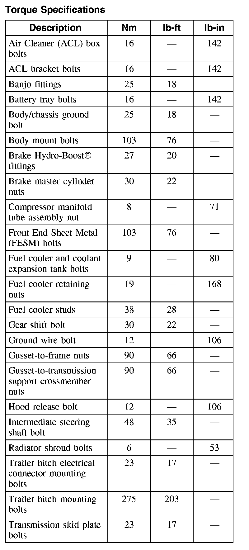 Torque Specifications