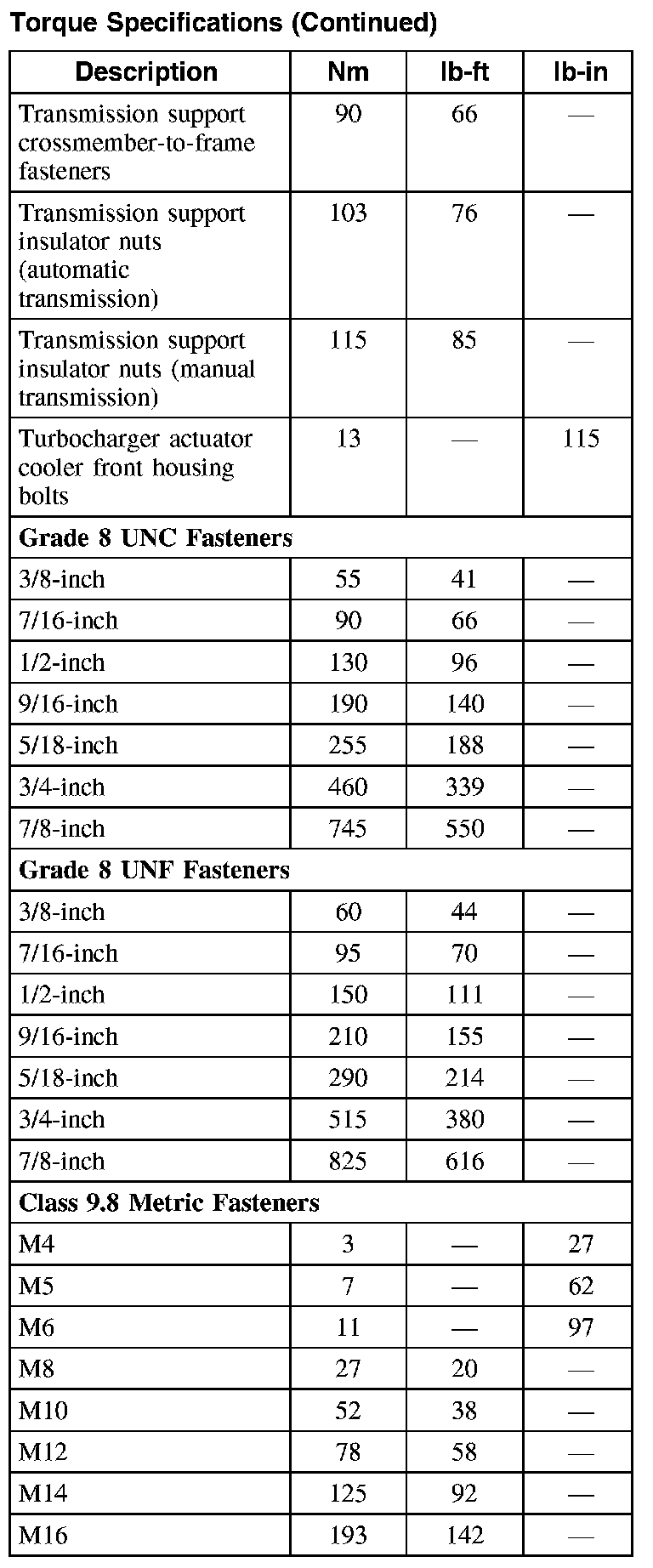 Torque Specifications (Part 2):