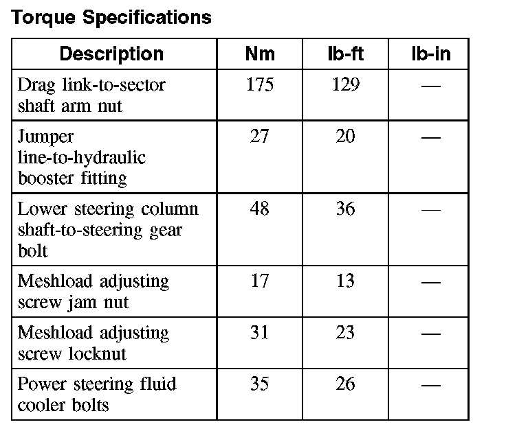 Torque Specifications (Part 1):