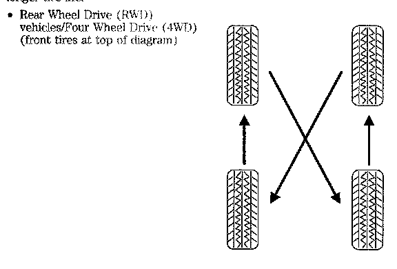 Note: If your tires show uneven wear ask an authorized dealer to check for and correct any wheel misalignment, tire imbalance or mechanical problem involved before tire rotation.