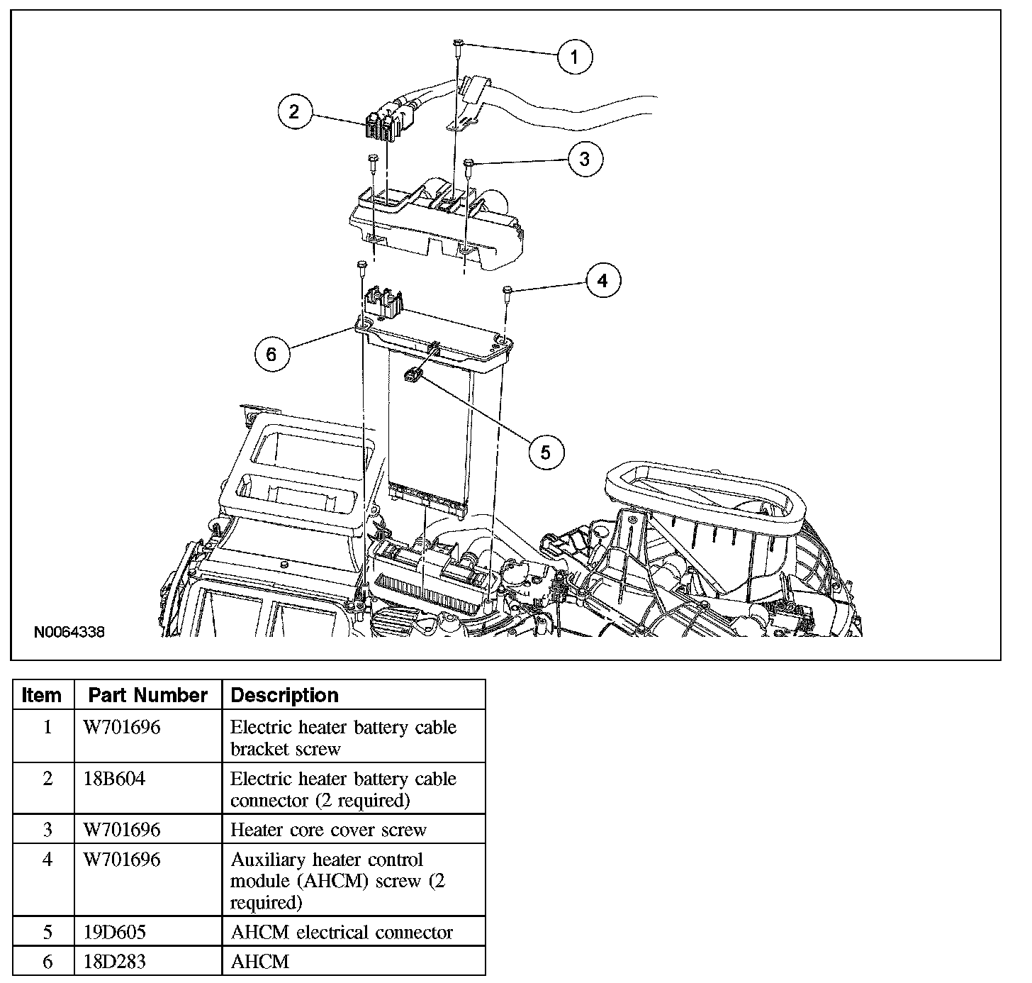 5. Remove the 2 auxiliary heater control module (AHCM) screws.