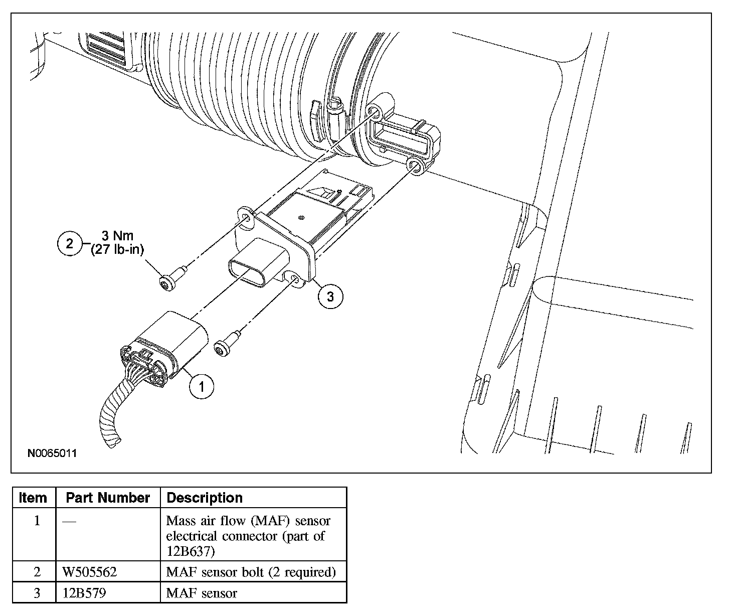 1. Disconnect the mass air flow (MAF) sensor electrical connector.