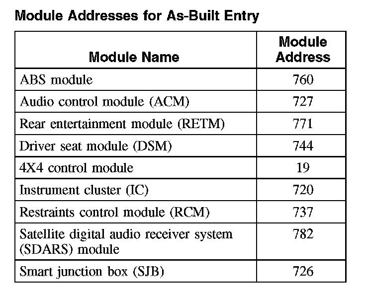 NOTE: It is not necessary to obtain As-Built data unless directed to do so by the scan tool. This data may be accessed from the technician service publication website.