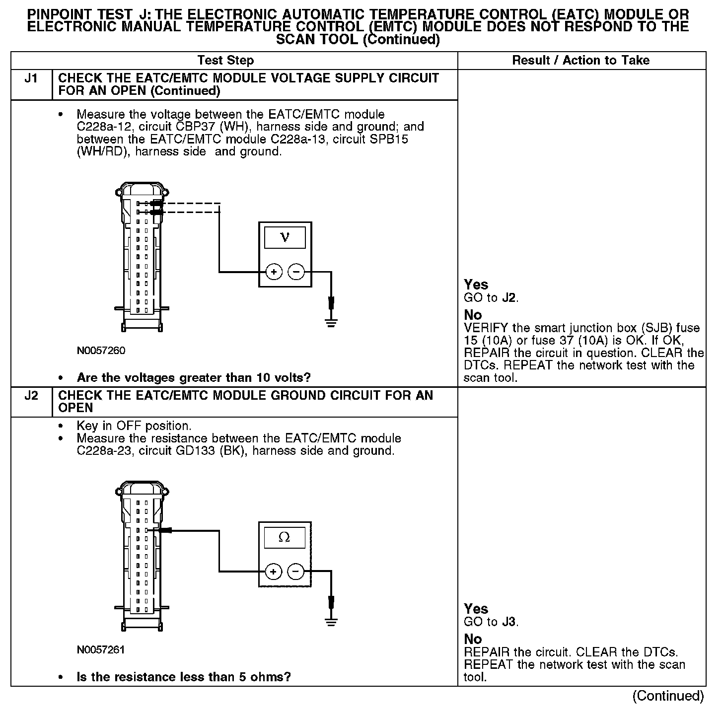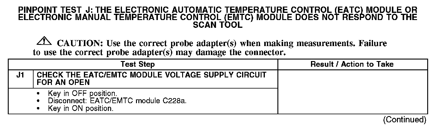 PINPOINT TEST J: THE ELECTRONIC AUTOMATIC TEMPERATURE CONTROL (EATC) MODULE OR ELECTRONIC MANUAL TEMPERATURE CONTROL (EMTC) MODULE DOES NOT RESPOND TO THE SCAN TOOLNormal Operation